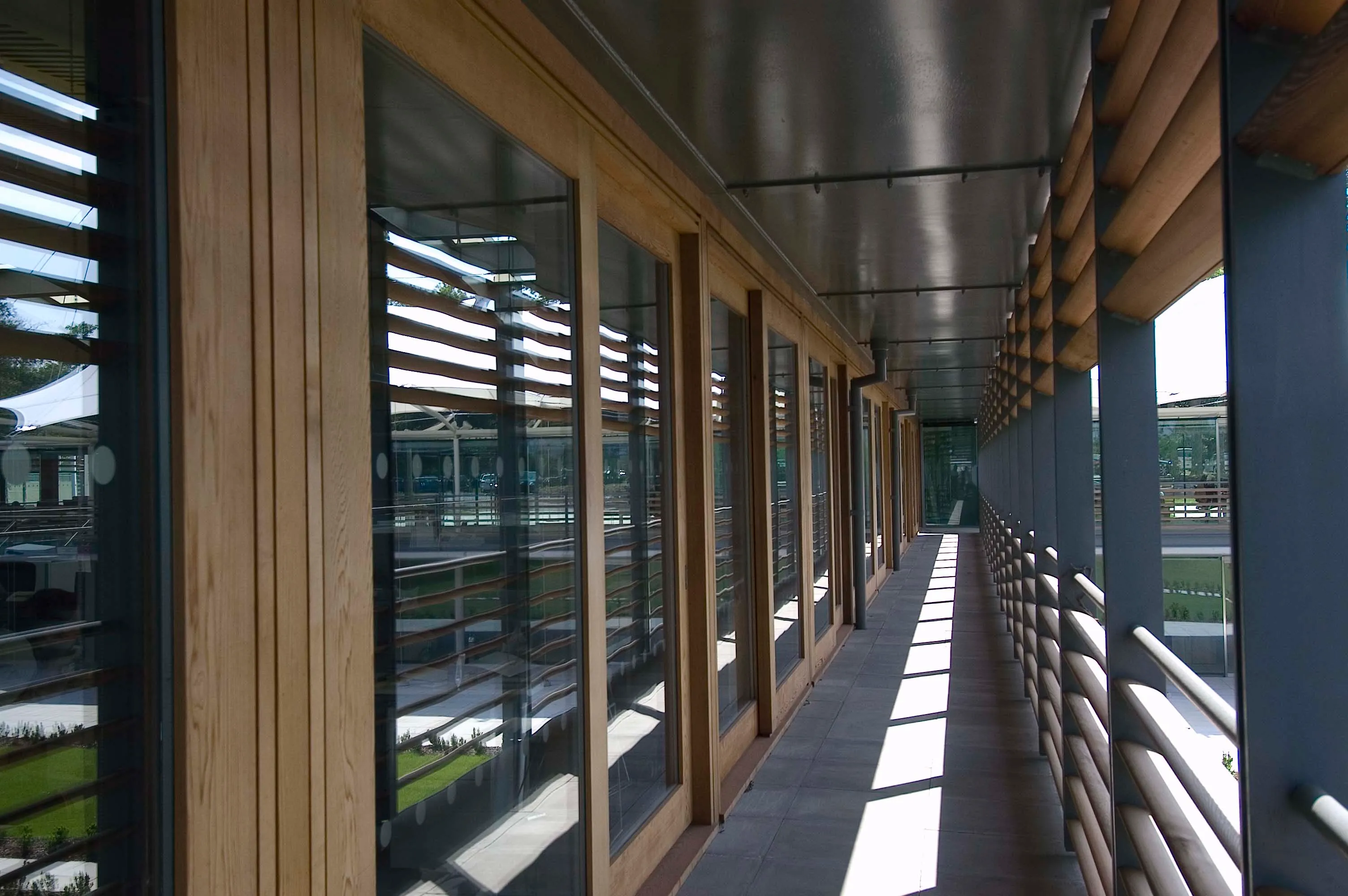 The National Tennis Association in London was officially opened by the Her Late Majesty Queen Elizabeth II, as the patron of the Lawn Tennis Association. As part of a design, manufacture and installation contract, this scheme featured stained cedar cladding, louvres and external glazed doors.